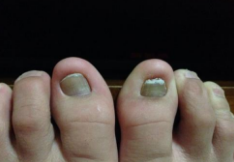 增厚:真菌侵入甲板或甲床后,甲板中的角质物受到真菌的作用而高度增殖,角质物的堆积使甲板增厚。甲板的增厚也加深了甲床混浊程度,一般它可以比正常甲板厚出1~3倍以上。
