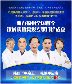 世界银屑病日(10月29日)即将到来,福州华研中医皮肤专科(省市医保定点单位,医科大学临床教学医院)迎来了一大批的名老专家。福州华研院长、市皮肤病医院原院长、原福建医科大学皮肤病教研室主任教授,率先在福州成立首个银屑病抗复发专家门诊,专业治疗牛皮癣。